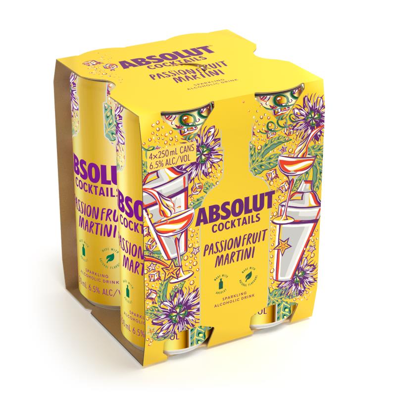 Absolut Cocktails Passionfruit Martini 6.5% Cans 4x250ml