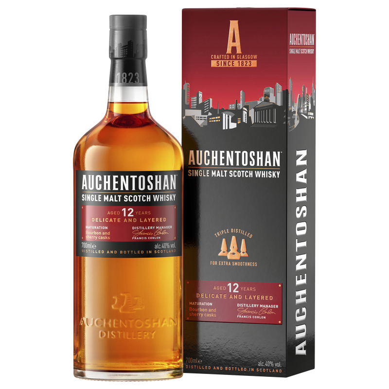 Every last drop of this spectacular Scotch is triple distilled then matured for over twelve years. This Lowland single malt has the tempting aroma of crème brulee to the nose with a burst of citrus and then the signature nuttiness and green leafiness you would expect from Auchentoshan. On the palate a smooth whisky taste with sweet notes along with hints of tangerine and lime. The finish is gingery and slightly dry with a pleasant, lingering nuttiness.