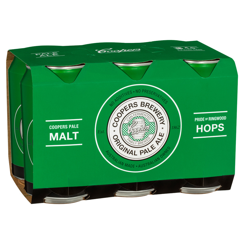 A refreshing and smooth easy drinking ale guaranteed to turn heads. This beer has a unique taste and youthful attitude - the flagship that welcomes the new generation to the Coopers family. Welcome to Australia's iconic Pale Ale. Coopers Original Pale Ale is brewed using the finest raw materials and traditional Ale brewing techniques, which produce a clean, well balanced and compelling flavour with fruity and floral characters, a crisp bitterness and a noticeable malt character.