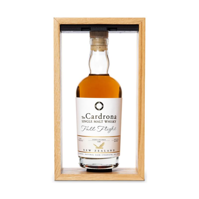 Full Flight is the final expression of The Cardrona Single Malt Whisky coming of age. Aged for seven years in a marriage of specially selected ex-Oloroso Sherry butts and ex-Bourbon barrels, Full Flight is decadently rich and delivered at natural cask strength. Dark fruits on the nose, and sticky treacle in the mouth. Opens with water.