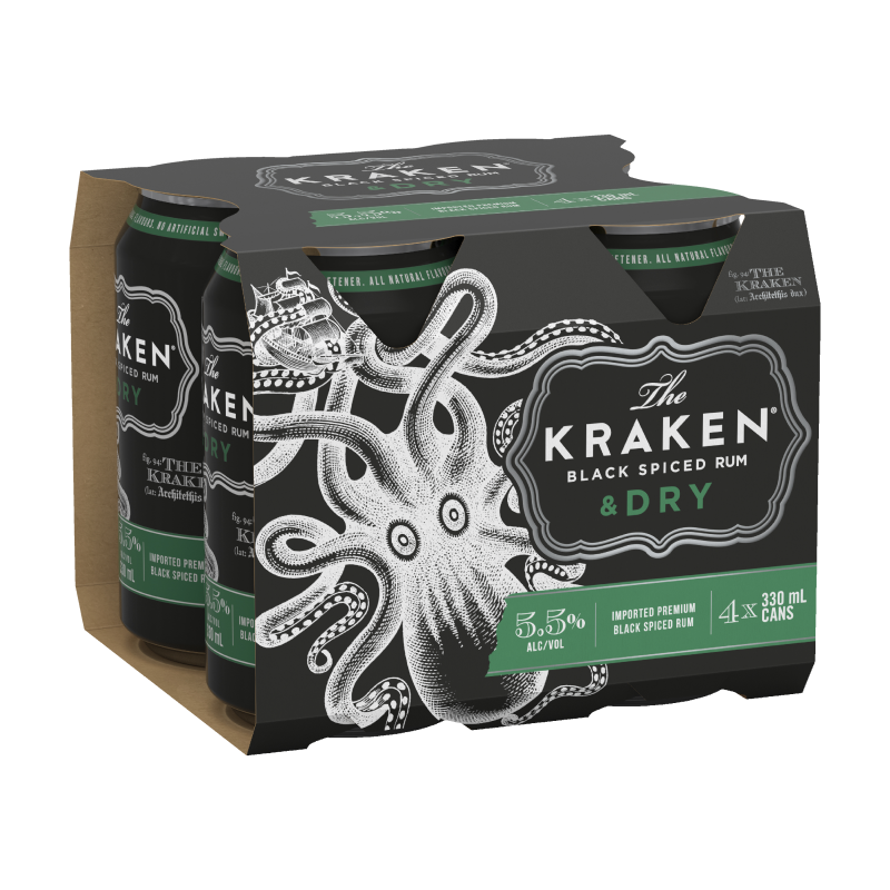 The Kraken Black Spiced Rum & Dry 5.5% Cans 4x330ml
